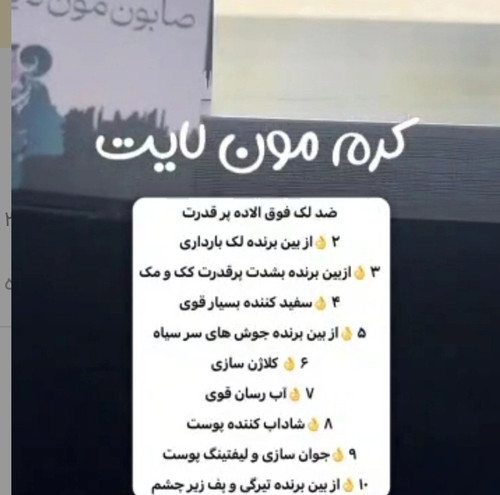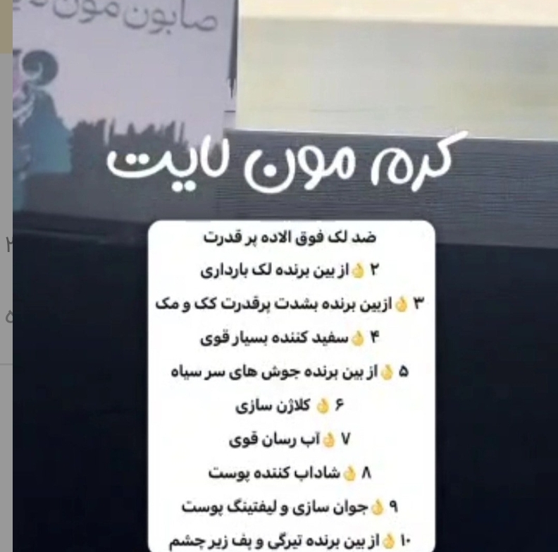 🌼مون لایت عروس کرم ها🌼 ۱👌 ضد لک فوق الاده پر قدرت ۲👌از بین برنده لک بارداری ۳👌ازبین برنده بشدت پرقدرت کک و مک ۴👌سفید کننده بسیار قوی ۵👌از بین برنده جوش های سر سیاه ۶👌 کلاژن سازی ۷👌آب رسان قوی ۸👌شاداب کننده پوست ۹👌جوان سازی و لیفتینگ پوست ۱۰👌از بین برنده تیرگی و پف زیر چشم ترین ضدلک حال🌼مون لایت عروس کرم ها🌼 ۱👌 ضد لک فوق الاده پر قدرت ۲👌از بین برنده لک بارداری ۳👌ازبین برنده بشدت پرقدرت کک و مک ۴👌سفید کننده بسیار قوی ۵👌از بین برنده جوش های سر سیاه ۶👌 کلاژن سازی ۷👌آب رسان قوی ۸👌شاداب کننده پوست ۹👌جوان سازی و لیفتینگ پوست ۱۰👌از بین برنده تیرگی و پف زیر چشم ضد لک مون لایت با صابون شیده از بین برنده لک و روشن کننده صورت.کاملا گیاهی محصول طب سنتی